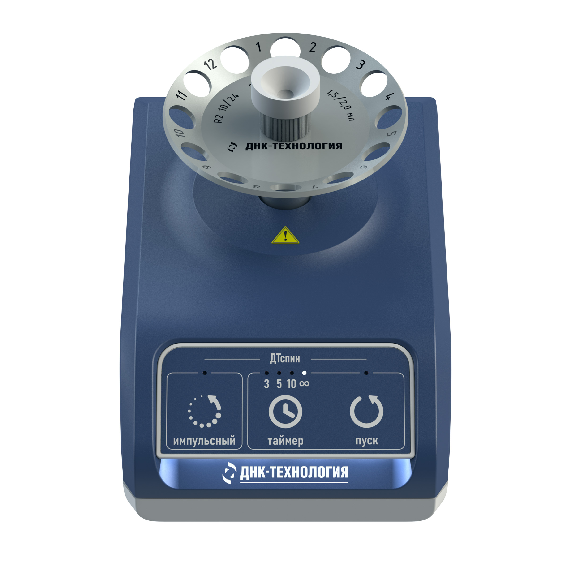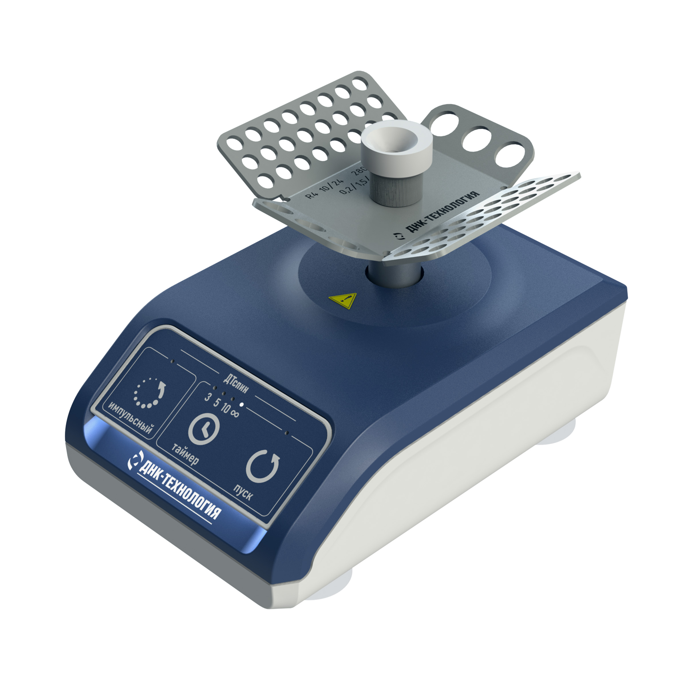 Миниатюрная центрифуга ДТспин занимает мало места и очень удобна в работе благодаря большой сенсорной панели. В нижней части размещены присоски, обеспечивающие прочное сцепление с рабочей поверхностью.