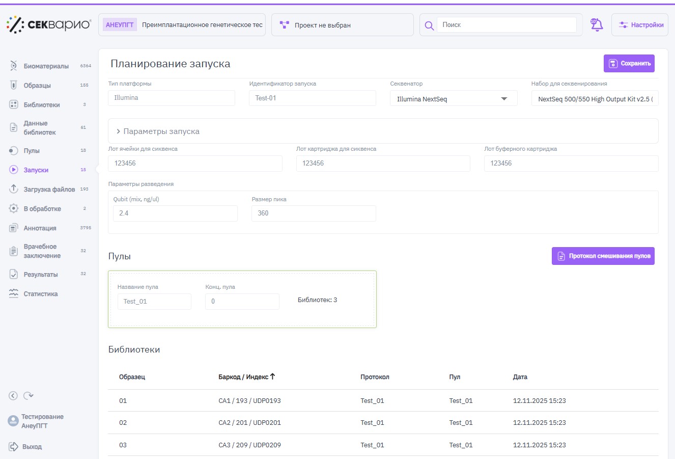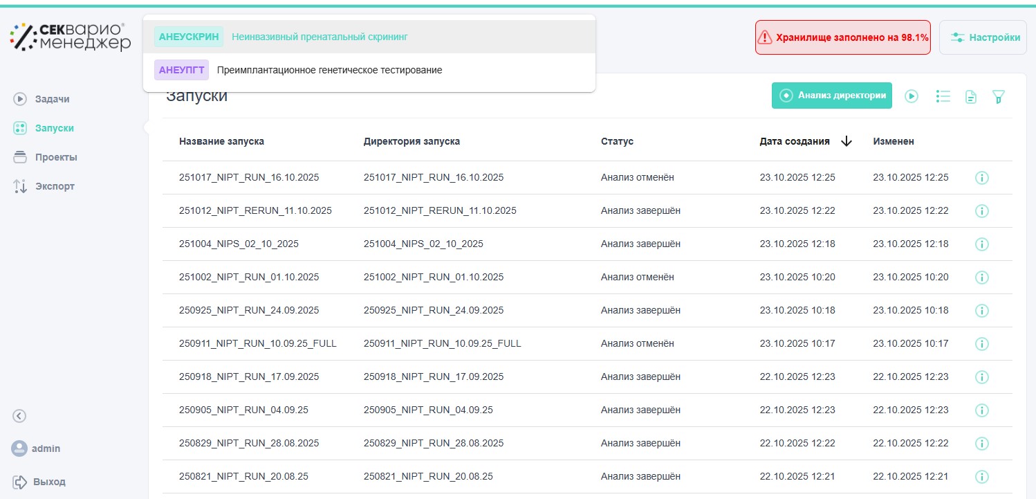 - Возможность проводить обработку как одиночных, так и совместных запусков (например, НИПТ вместе с ПГТ-А);