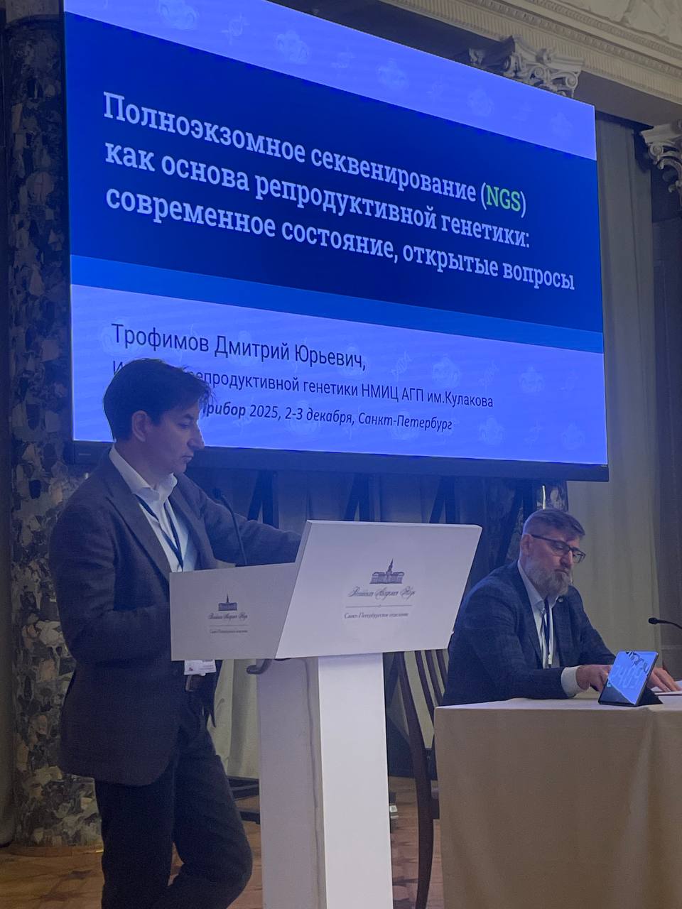 В рамках деловой программы с докладом выступил член-корр. РАН, директор Института репродуктивной генетики НМИЦ АГП им. В.И. Кулакова Трофимов Дмитрий Юрьевич. Он представил пленарный доклад на тему «Полноэкзомное секвенирование как основа репродуктивной генетики: современное состояние, открытые вопросы».