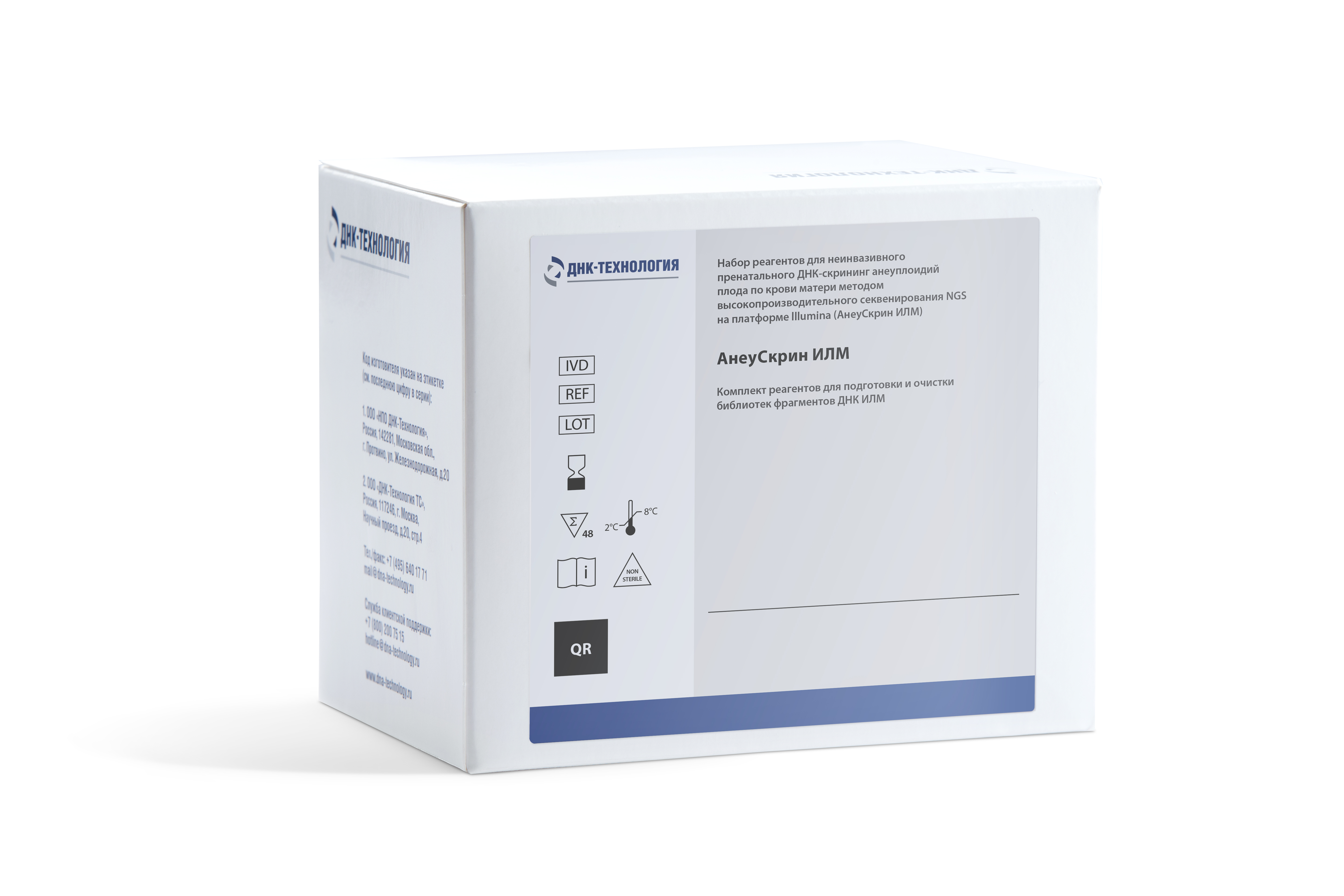 Набор реагентов для неинвазивного пренатального ДНК-скрининга анеуплоидий плода по крови матери методом высокопроизводительного секвенирования NGS на платформе Illumina АнеуСкрин ИЛМ предназначен для неинвазивного ДНК-скрининга беременных женщин с целью обнаружения хромосомных аномалий плода – анеуплоидий по аутосомам 13, 18, 21, половым хромосомам Х и Y, а также частичных дупликаций и делеций с помощью исследования внеклеточной ДНК плода методом высокопроизводительного секвенирования (NGS) на платформе Illumina с использованием программного обеспечения «АнеуСкрин».